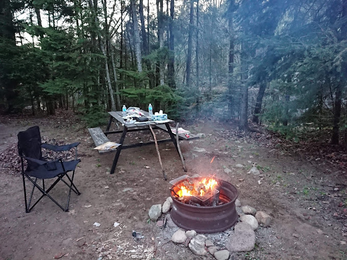 Each site has its own picnic table and fire pit. We offer firewood and ice for sale at the Front Desk.